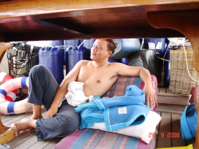 “พวกเราคนไทยครับ มาจากเกาะสมุย จะไปภูเก็ต” กัปตันไก่ บอกเธอ พร้อมกับหัวเราะ แล้วหันมาพูดกับพวกเราว่า “มันนึกว่าเราเป็นอินโดฯ พูดภาษาไทยกับมันที”